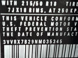 VIN 3VVRX7B29NM035345